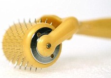 Skin-needling using a medical-grade dermaroller (pictured below) is then used to create hundreds of minute microchannels in the dermis of the skin allowing for highly enriched and concentrated pharmaceutical-grade anti-aging ingredients to penetrate beyond the dermal layer where it can work more effectively to combat skin damage.